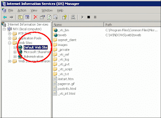 2.Expand the tree, under [Server Name]/Sites - Click on web site / virtual direcotry required